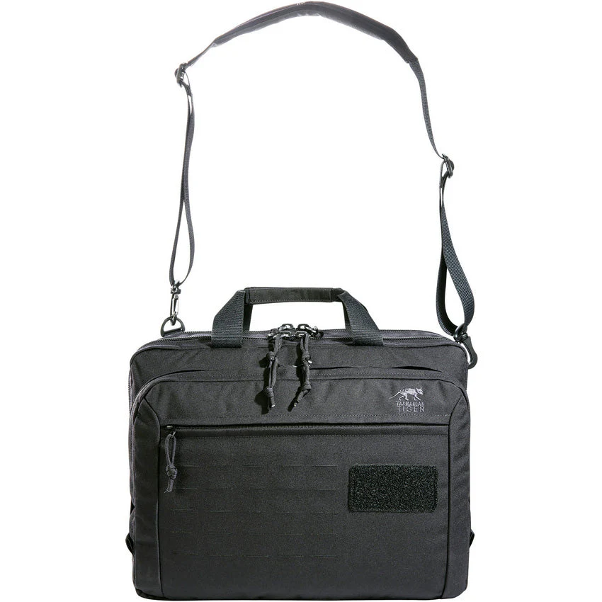 Dimensions: 12" x 16" x 7". Weight: 39oz. 18 Liter capacity. Trolley attachment on the back. Front pocket with dividers. Two large pockets for files. Detachable padded laptop sleeve. 700D Cordura construction. Color: Black. Bulk packed.